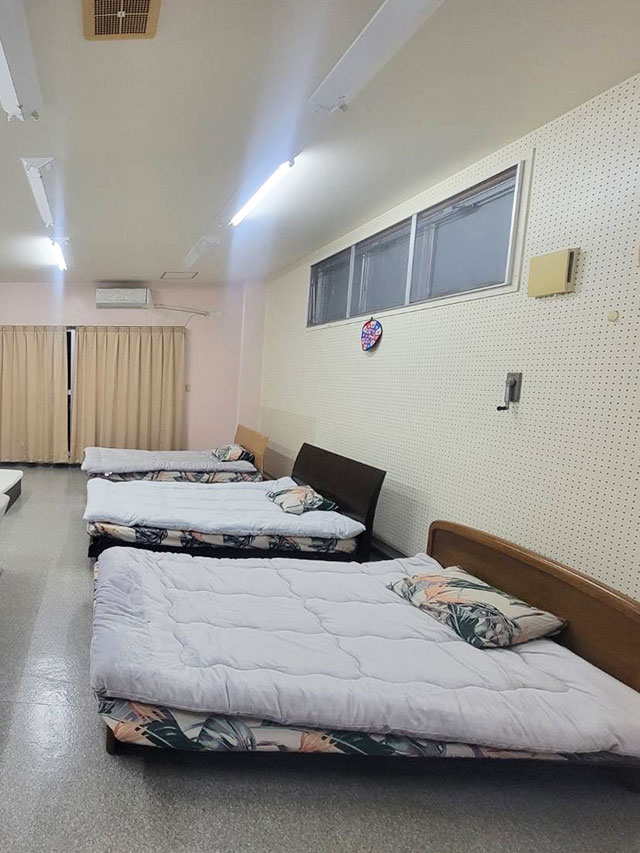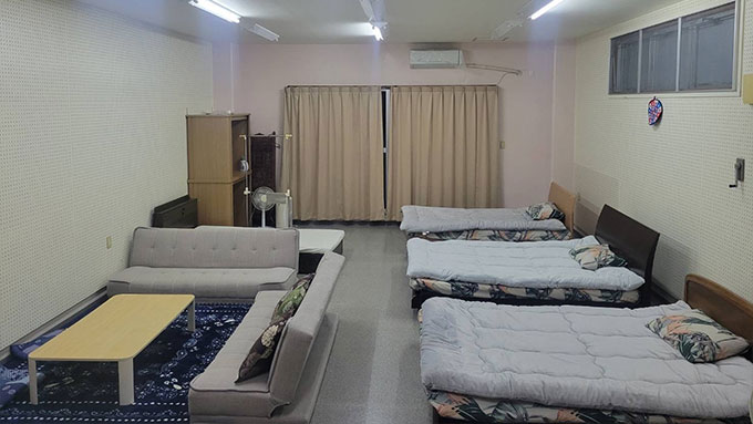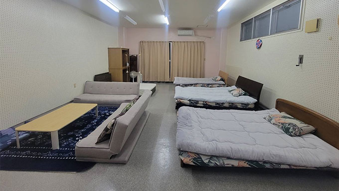 安間商店の2階で営業する「民宿 酒の家」は、沖縄らしい雰囲気の中で快適に過ごせる宿泊施設です。広々とした40畳の空間にはキッチンが完備されており、ご家族や友人同士でのご利用に最適です。